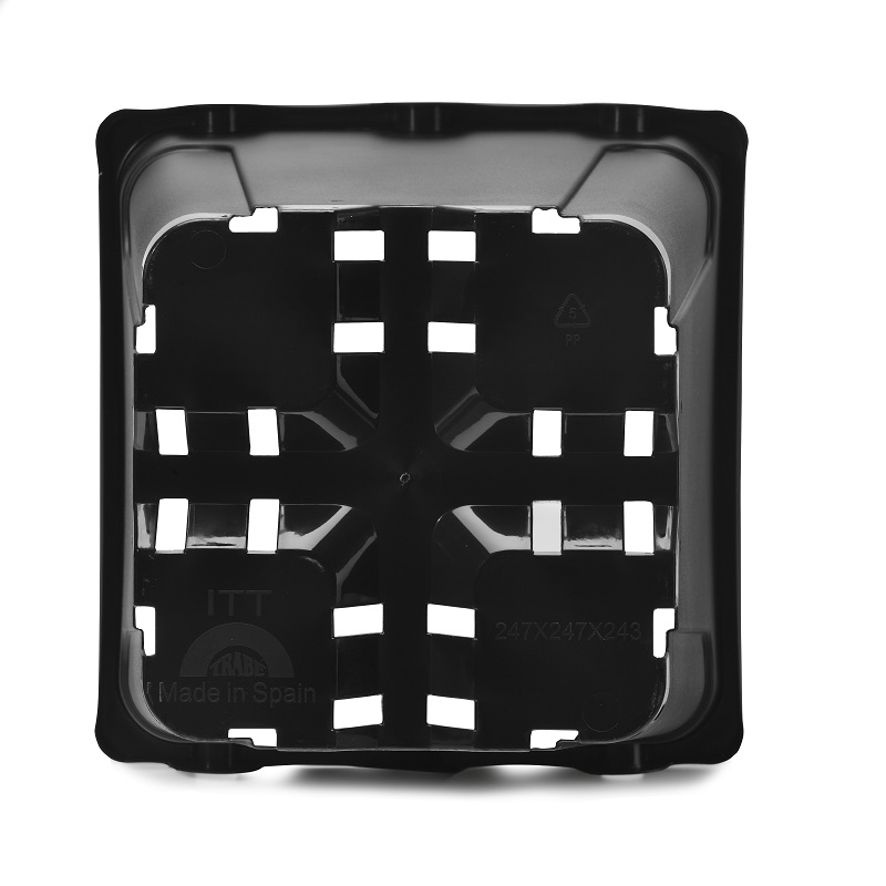 PIPE POT is a pot with 16 mm diameter channels on the rim, ideal for securing irrigation tubing and enabling automated irrigation.